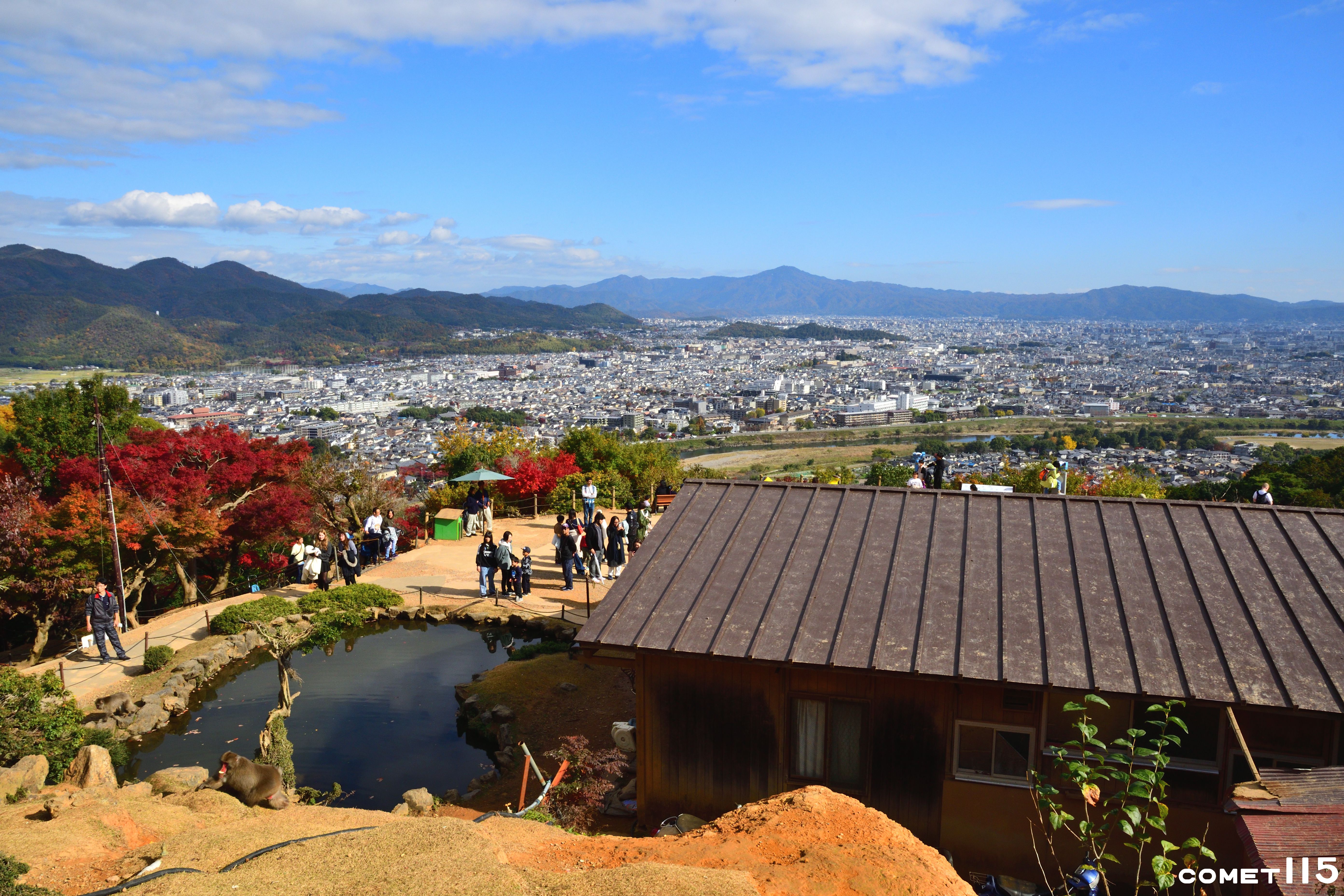 山頂猴子們聚集的休憩所有絕佳的京都市區展望 |